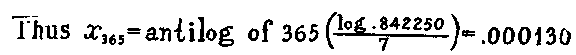 Yr then is the number of patients remaining in hospital at the end of successive five day periods. If, however, it is necessary to find directly the fraction of a patient remaining at the end of any other period, as for example one year (365 days), multiply as above by that number instead of by 5.