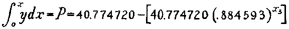 j. Integration of basic formula. ---To find then the number of patients on sick report, or in hospital as the case may be, at any time, add to the number admitted during the period, the number remaining from all preceding ones. For this purpose the basic formula is integrated between the beginning (M day) and the constantly advancing time, x5. Using the basic formula with one section, the integrated formula is