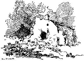 When a certain great stone structure on the water's edge is being shelled, the men off duty adjourn to the shore for the entertainment. They know the various schedules the shells run on, and time their arrival. The German guns firing them are so far off that the report cannot be heard. There is a deep, bass, tearing roar, closely followed by another, for they come in pairs; then two huge columns of water hurtle into the air for a hundred feet, accompanied by two heavy detonations. The bleacher-occupying Americans--- they have installed a bench to sit on---then jump up and scurry for a wall that affords protection against the éclats that sing back from the shells. In a second there is a rush for the hot chunks of metal, while the natives emerge from their shelters to collect the fish that have been killed by the terrific concussion---and fish à la bombardement is served to us the next day!