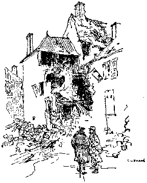 Last night "Mac" and I were on night duty at M-----, and when we arrived at the telephone bureau ---where we lie on stretchers fully dressed in our blankets waiting for a call (the rats would keep you awake if there were no work to do) --- we were told that they expected a bad bombardment of the village. " Mac" and I tossed up for the first call, and I lost. "Auberge Saint-Pierre, I bet," laughed "Mac." That is our worst trip --- but it was to be something even more unpleasant than usual. About eleven o'clock the Boches started shelling the little one-street village with 105 shrapnel. In the midst of it a brancardier came running in to ask for an ambulance ---three couchés, "très pressé." Of course, I had to grin and bear it, but it is a horrid feeling to have to go out into a little street where shells are falling regularly ---start your motor --- turn --- back --- and run a few yards down the street to a poste de secours where a shell has just landed and another is due any moment.