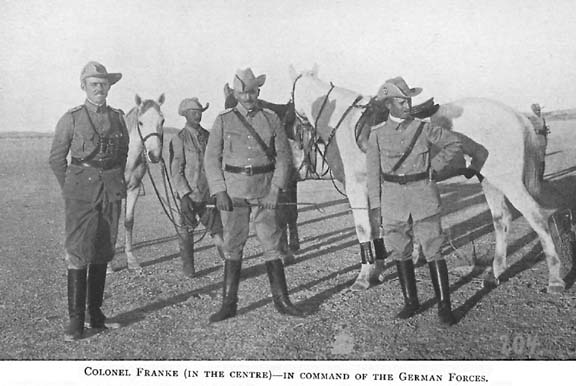 The trek from Aus to Gibeon was a wonderful feat of pluck and endurance on the part of the men and horses, for over 200 miles of practically desert country had been traversed without transport. Roads there were next to none, and the men had hoped to live on the country; but there was little to live on save a few sheep and cattle, and dry scanty grass for the horses. Men and horses were utterly exhausted when they fought this fight, and they were yet to have two months of privation and exposure before they reached Windhuk. We of the Northern Force received most of the kudos for this campaign, but our sufferings never approached those of the Central Force, nor even, I believe, those of the Eastern or Southern forces who advanced to Keetmanshoop.